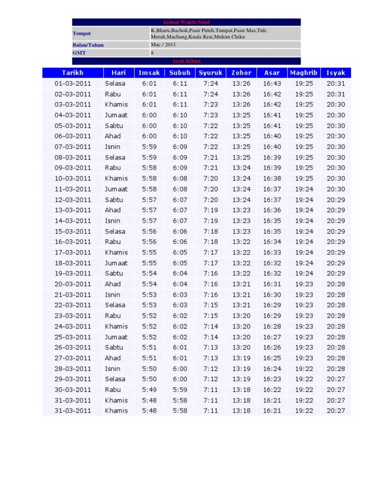 Jadual Waktu Solat Sekolah Rendah Islam Aman Kota Bharu Facebook